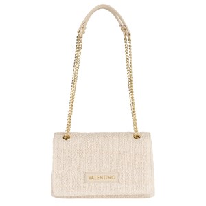 Ocarina Summer-skuldertasken fra Valentino har en naturlig, afslappet stil med vævet tekstur og glatte PU-detaljer. Guldkæde og dobbeltrem giver et poleret look, og flappen åbner til et praktisk rum til dine daglige ting.