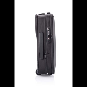 Flex Foldable Trolley er den perfekte rejsemakker til kortere rejser. Tasken er flektsibel og kan nemt tilpasses fra 15 til 30 liters opbevaring. Tasken er indretet, så du kan have alt fra personlig pleje til computer med på rejsen i en og samme taske. I tasken er en gennemsigtig pose til væske, som sidder fast i tasken med en eksklusiv magnetisk lås. Tasken fungerer både som kuffert og håndbagage og er designet i det velkendte anti-tyveri design med skjulte lommer og ingen adgang fra taskens front. I tasken er der intergreret TSA-lås med kode og et usb-stik til opladning af dit elektroniske udstyr. Hver Flex Foldable Trolley har sparet 31 liter vand ved produktionen samt genbrugt 52 plastflasker.